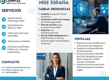 Ofrecemos auditoría NIS2, CISO como servicio y software GRC para tu empresa.
