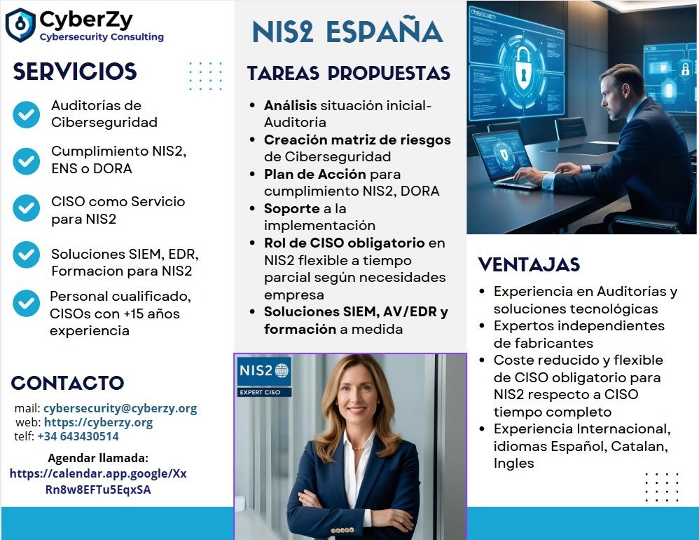 Nuestro CISO como servicio ofrece a las organizaciones liderazgo experto para gestionar la estrategia de ciberseguridad, la gobernanza y la mitigación de riesgos. Adaptado a las necesidades de tu negocio, un CISO virtual (vCISO) supervisa los marcos de seguridad, garantiza el cumplimiento y alinea las iniciativas de seguridad con los objetivos empresariales. Además permite cumplir con la NIS2 en organizaciones consideradas como esenciales.